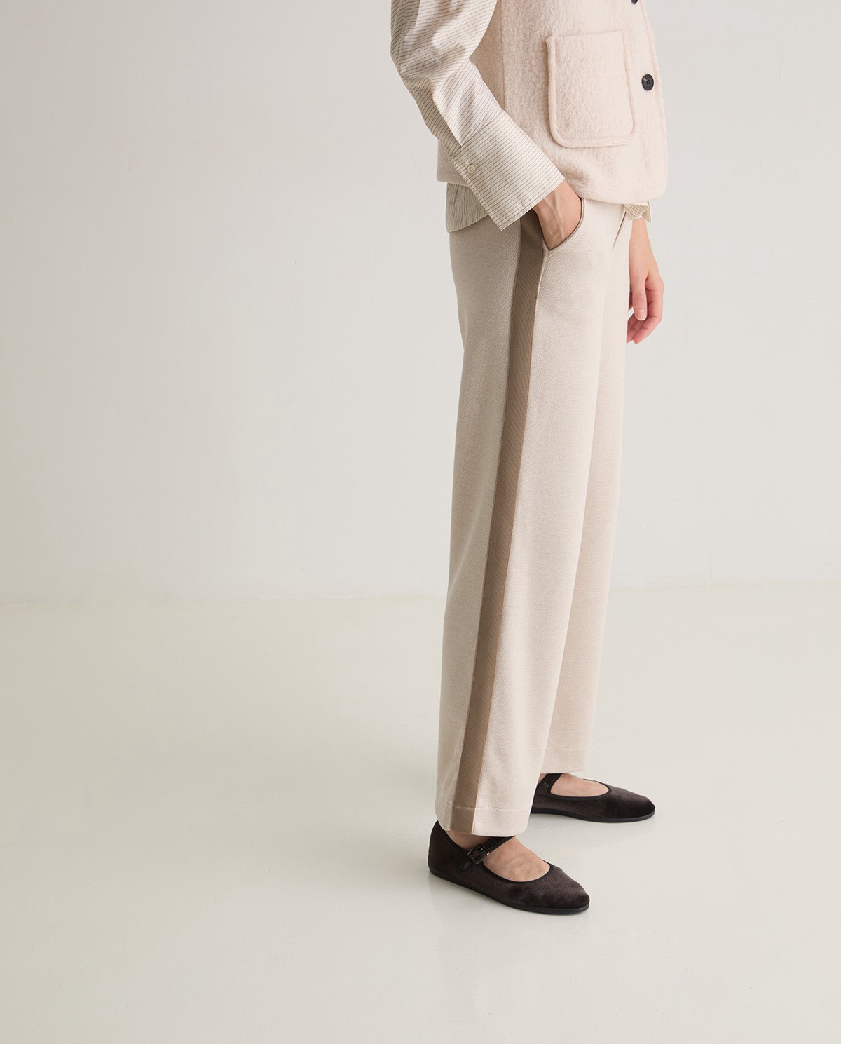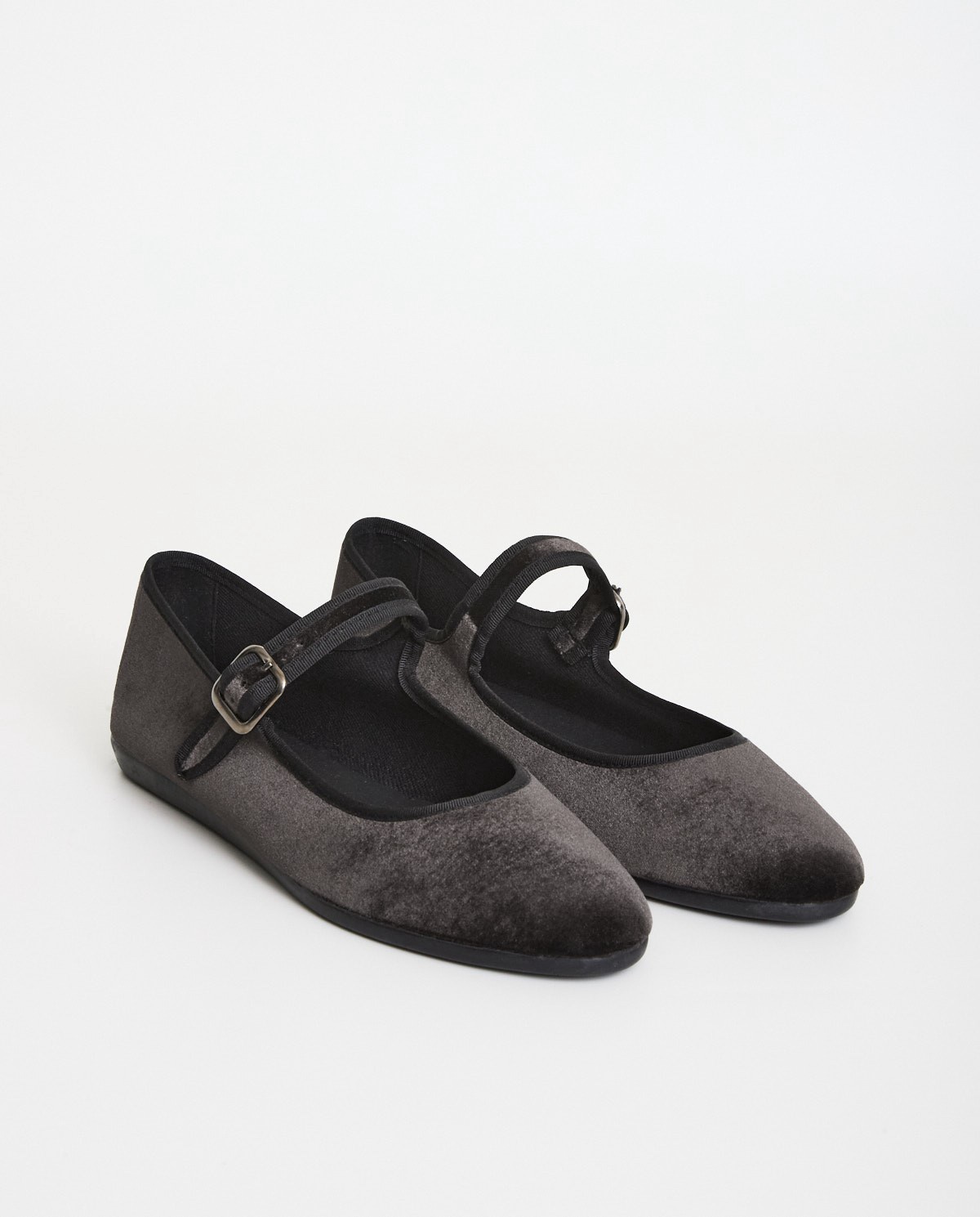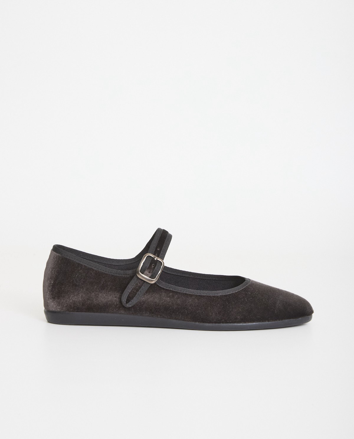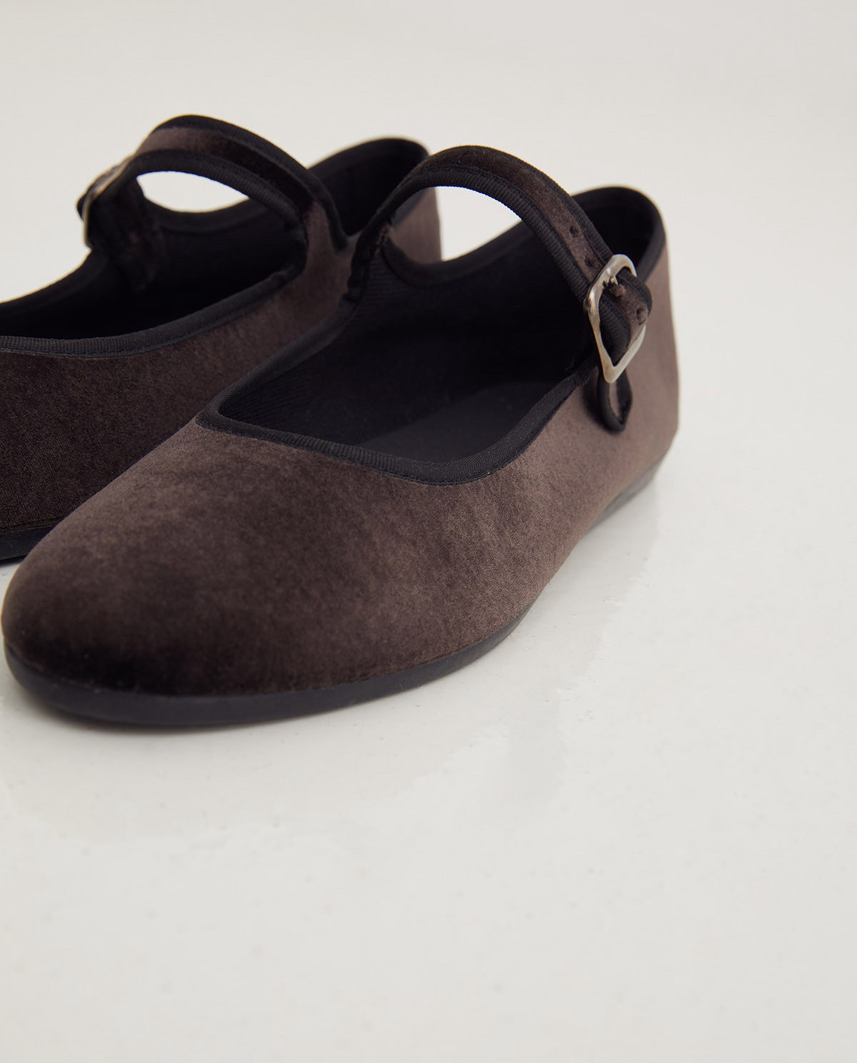 Bailarina de terciopelo. Tejido de algodón con suela de goma. Ribete en contraste de color negro.