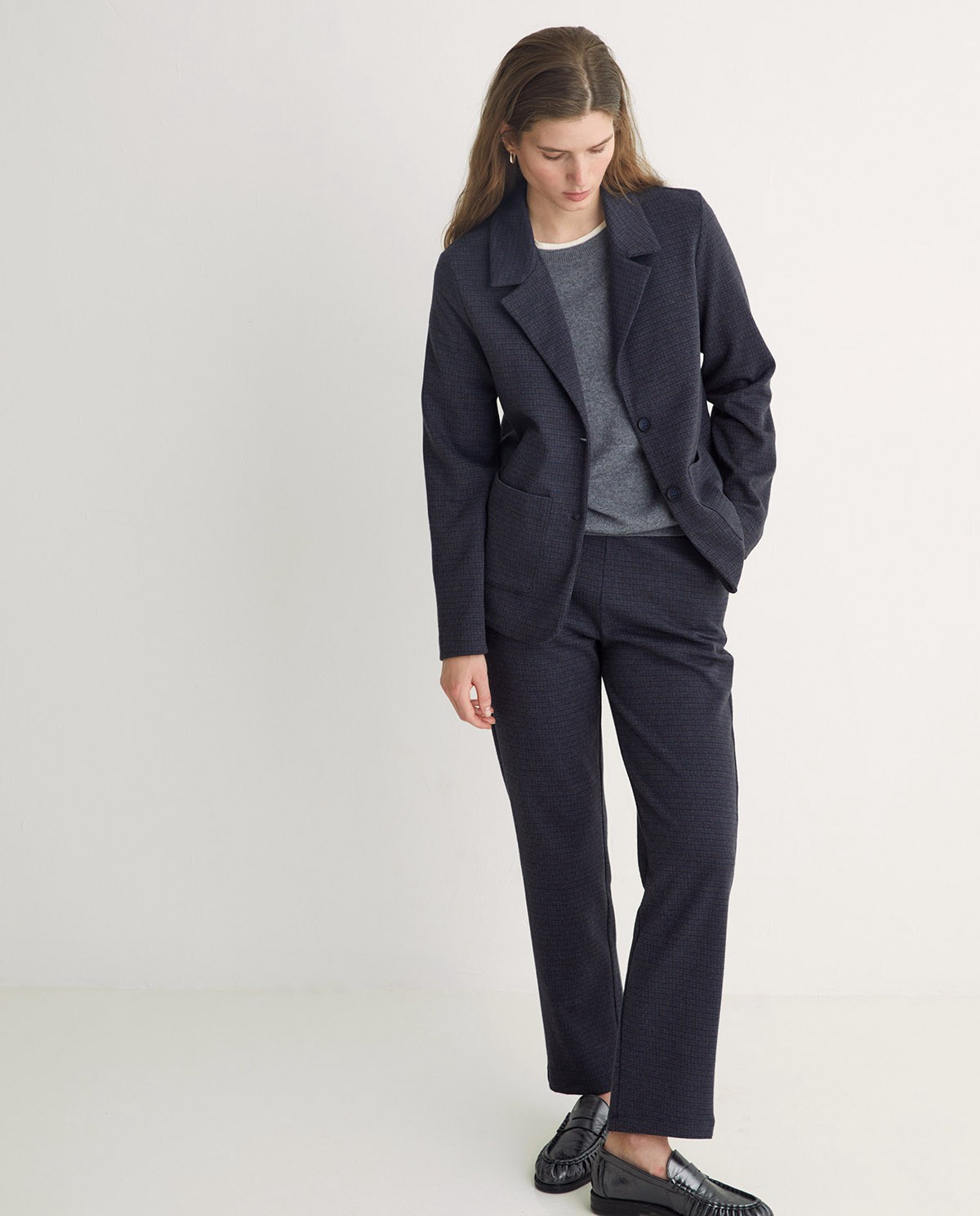61% poliéster, 20% algodón, 18% viscosa 1% elastano