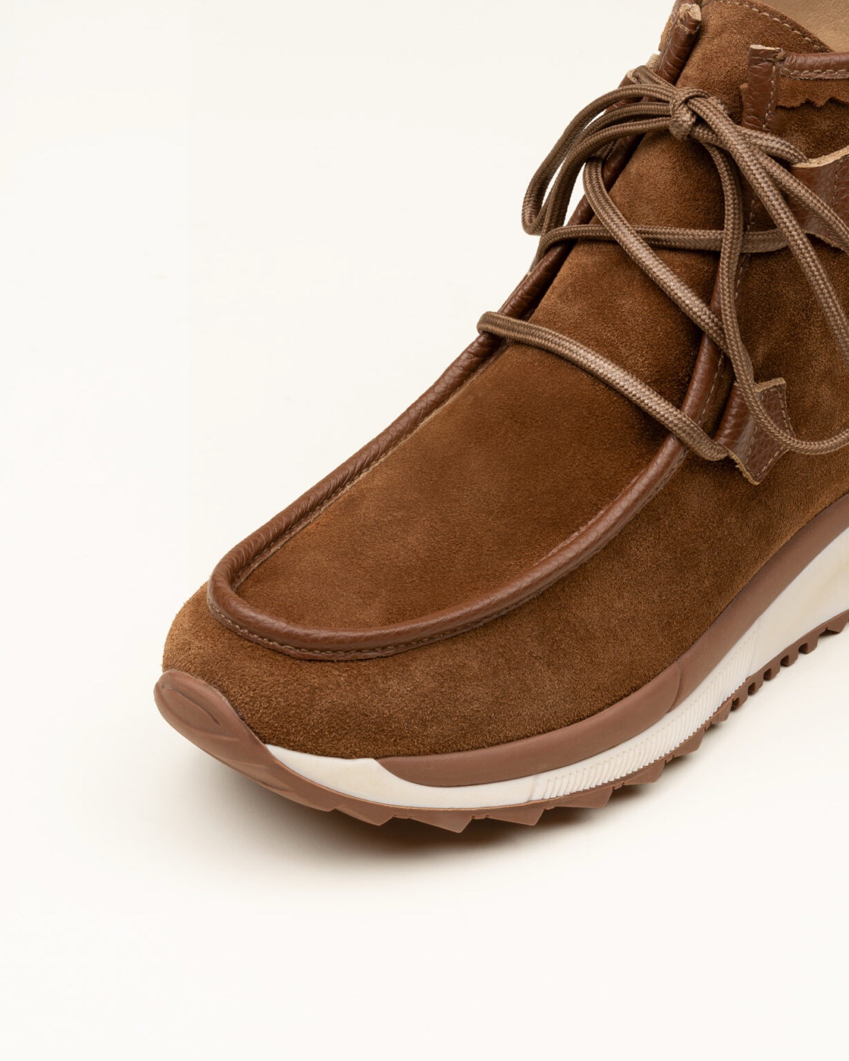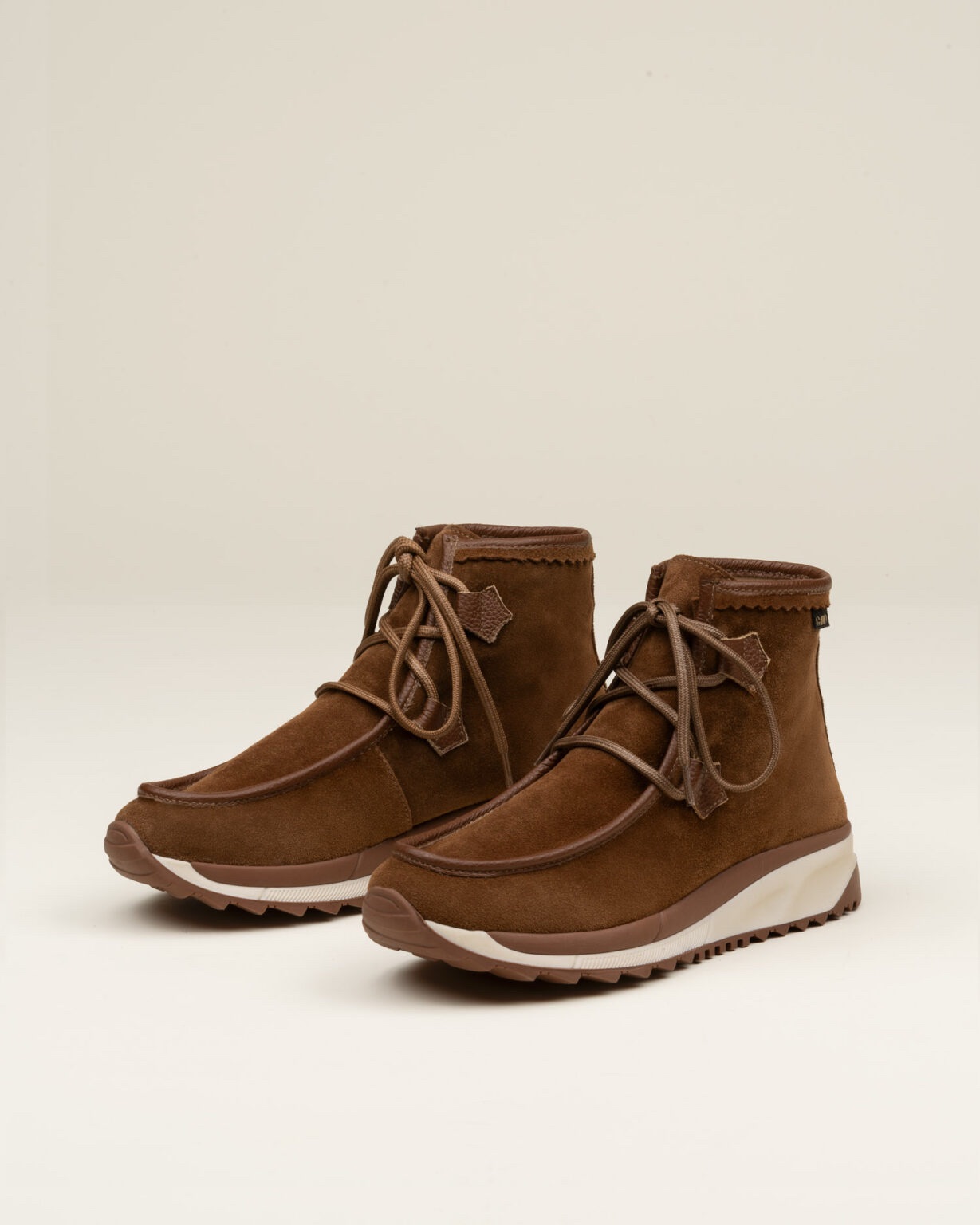 El modelo Marcel de Gaimo reinterpreta el clásico botín Wallabee con un diseño moderno, femenino e informal. Confeccionado en piel serraje suave, cuenta con cordones ajustables, plantilla con tejido transpirable y suela de goma deportiva que aporta ligereza y estilo. Hecho a mano en Arnedo, La Rioja, combina funcionalidad y confort con un aire contemporáneo, convirtiéndose en un imprescindible de la tem