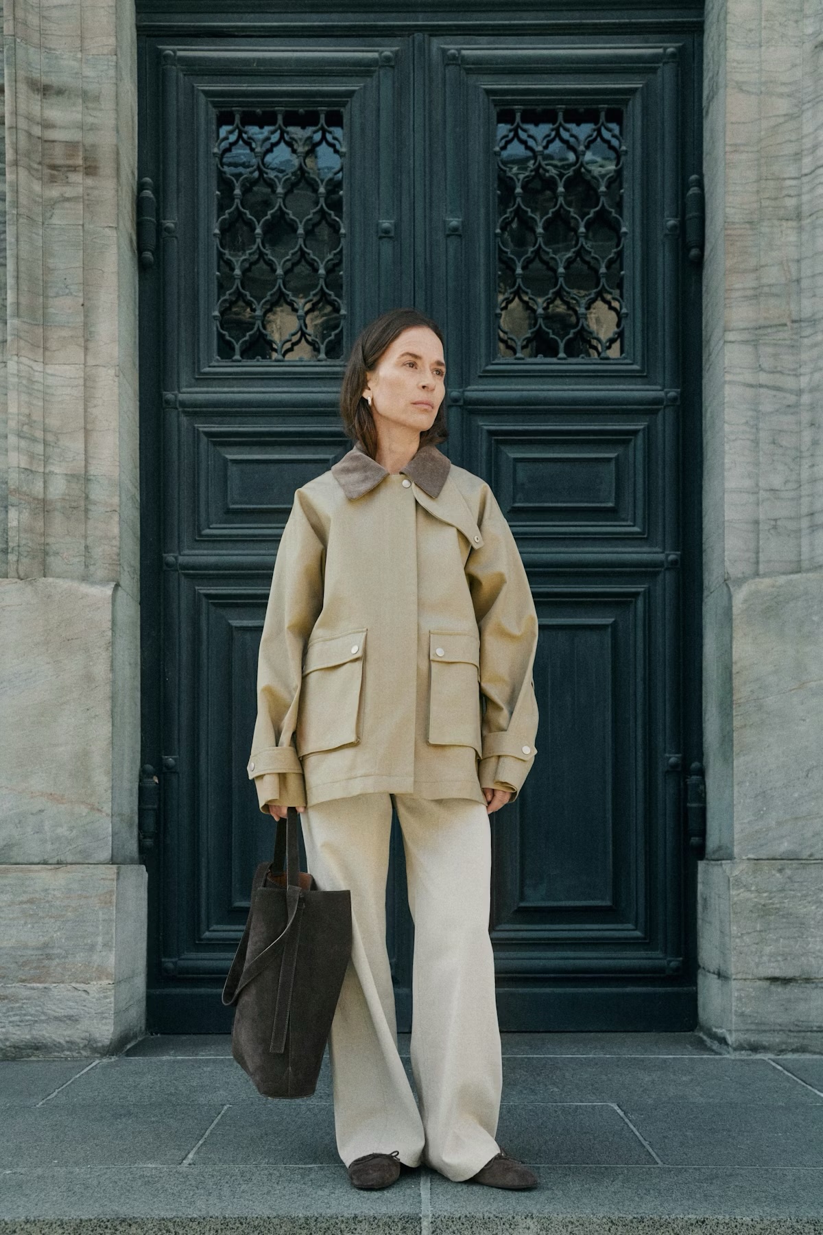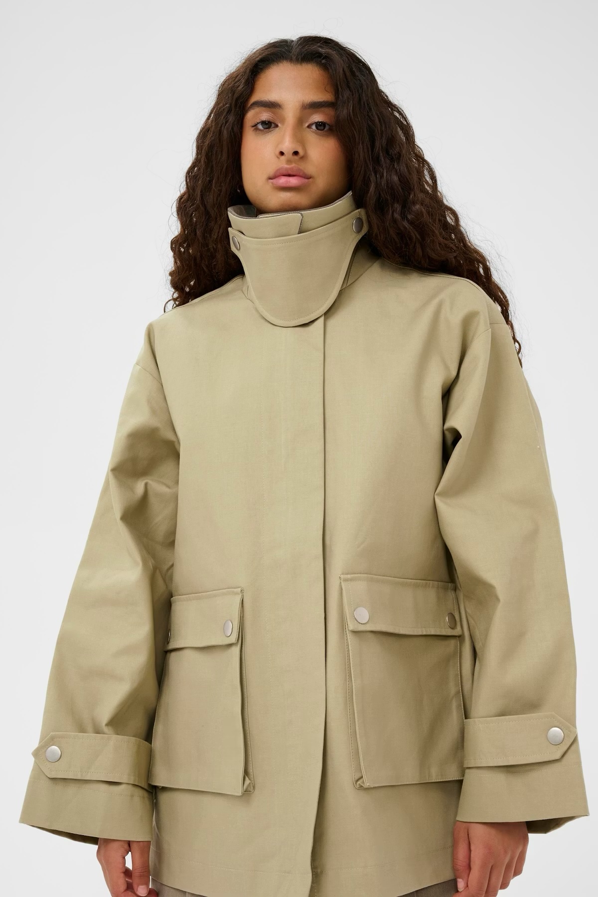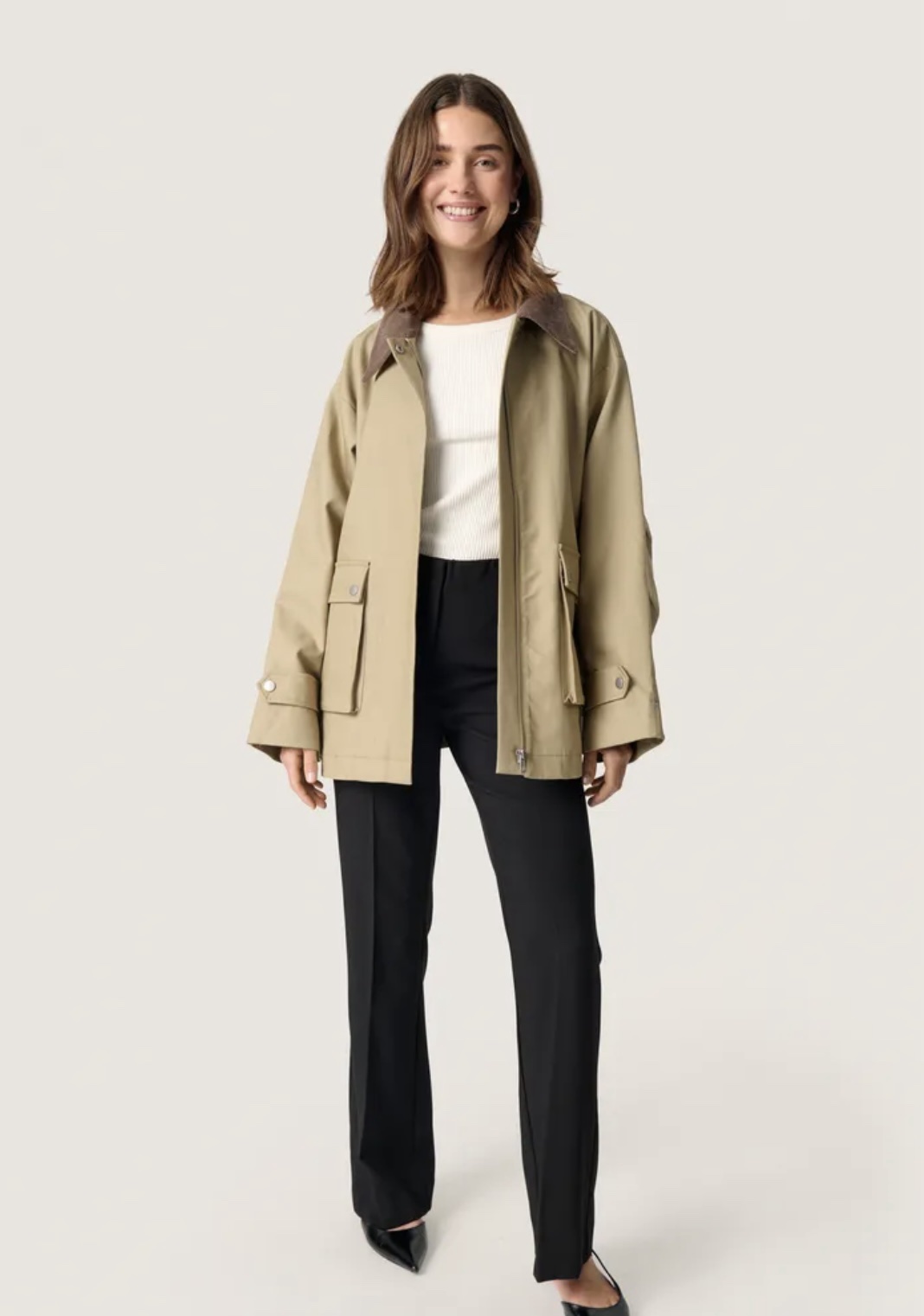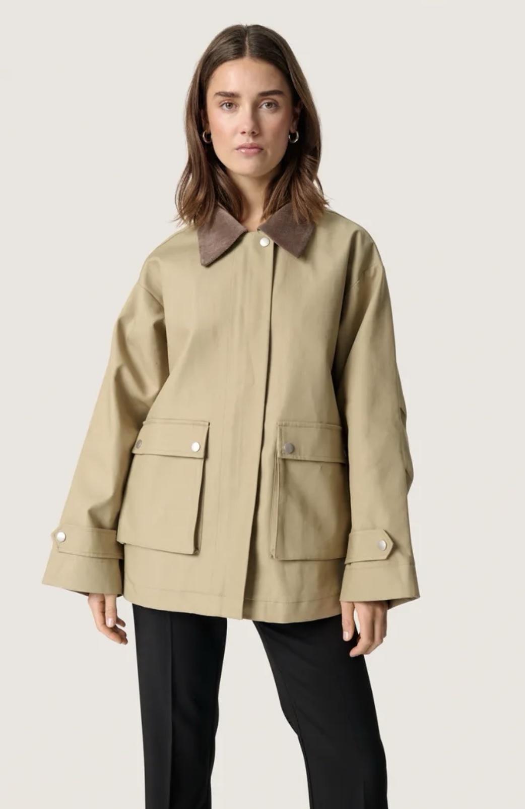 Chaqueta de corte oversized con cuello de micro pana y bolsillos de plastón delanteros